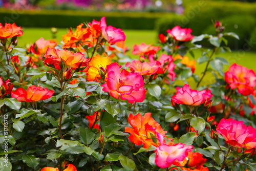 © Bowonpat, Obraz premium Beautiful roses in full bloom at the Japan Rose Garden.