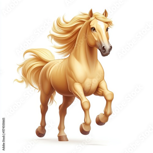 © Ronnakrit, Obraz premium Beautiful Running Blonde Horse with Flowing Mane in Motion