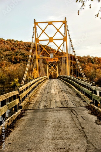 © Brenda, Fototapeta premium Beautiful Rustic Golden Bridge View in Autumn in the Midwest Heartland of America