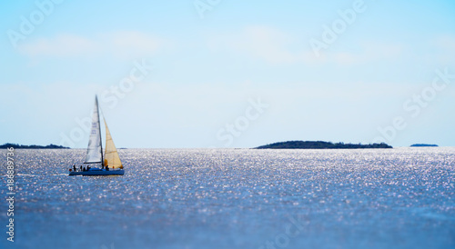 © ErenMotion, Obraz premium Beautiful Sailboat in the Ocean