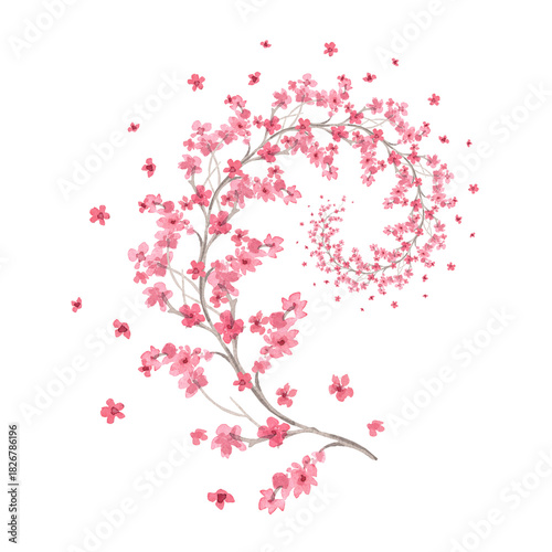 Obraz premium Beautiful sakura branch. Watercolor handmade illustration. For fabric,...