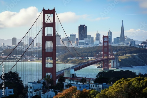 Obraz premium Beautiful San Francisco skyline with Golden Gate Bridge, Ai generated
