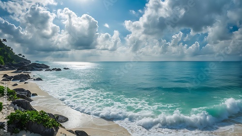 Fototapeta premium beautiful sandy beach and sea with clear blue sky background amazing beach...