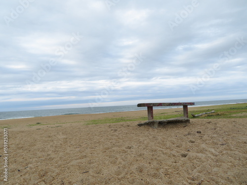 Obraz premium beautiful sandy beach summer lonely sea waves sky vacation tranquility...