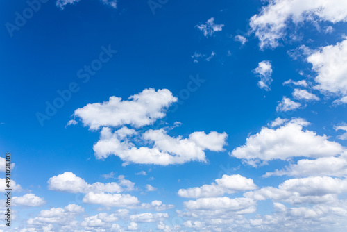 Fototapeta premium Beautiful saturated sky with white fluffy clouds.