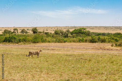 Naklejka premium Beautiful savannah landscape with a Cheetah