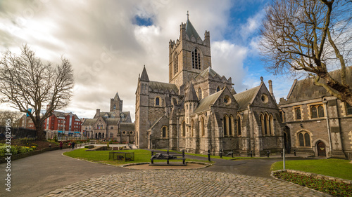 © Cristi, Obraz premium Beautiful scene daylight Dublin Ireland capital landscape city urban area old town modern office building Christ Church