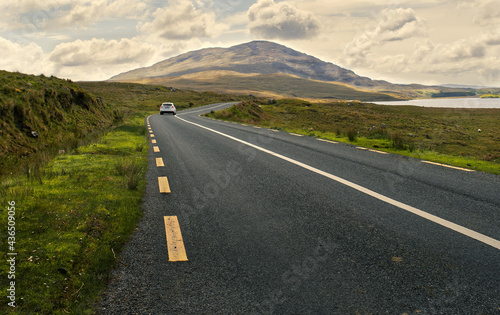 Fototapeta premium Beautiful scenery of road by the lough inagh with mountains in the background...