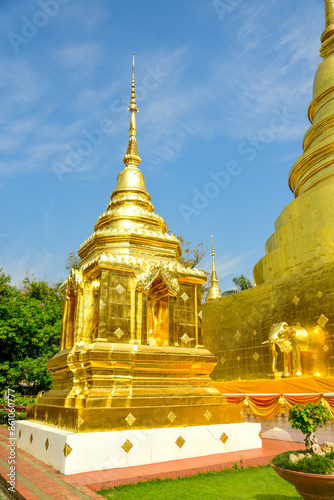Naklejka premium タイチェンマイにあるワット・プラシン寺院の美しい風景Beautiful scenery of Wat Phra Singh temple in Chiang Mai, Thailand