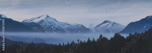 © Jason, Obraz premium Beautiful scenic landscapes of the pacific north wests Bowen Island BC Canada. With pristine lakes, fog, mist, and rocky beaches with mountain backgrounds.