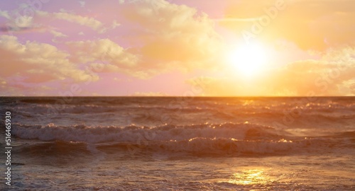 Obraz premium Beautiful sea at sunset. Dramatic sky with glowing clouds. Setting sun. Abstract natural
