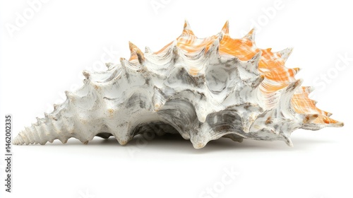 Obraz premium Beautiful Sea Shell with Spikes and Orange Accents on White Background