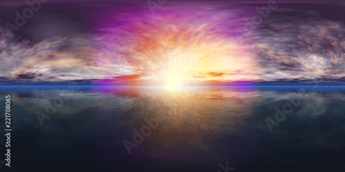 © ustas, Naklejka premium Beautiful sea sunset, panorama of the sea landscape, nvironment map. HDRI . equidistant projection. Spherical panorama. panorama 360.