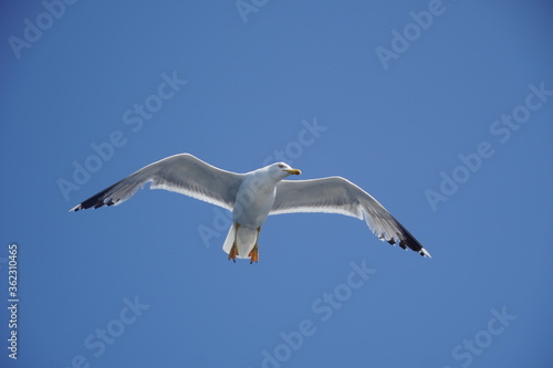Obraz premium Beautiful seagulls following a ferry boat in Greece