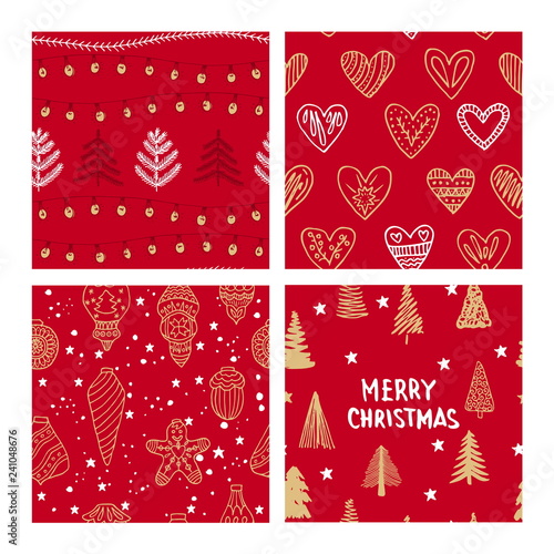 Fototapeta premium Beautiful seamless Christmas and winter patterns, drawn by hand. Many festive...