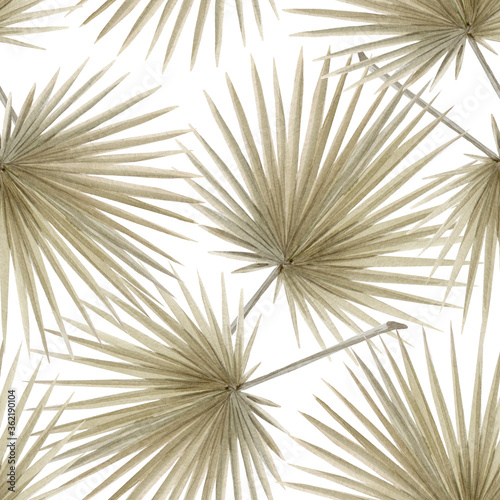 © Zenina-Lembrik, Obraz premium Beautiful seamless pattern with watercolor tropical leaves. Stock illustration
