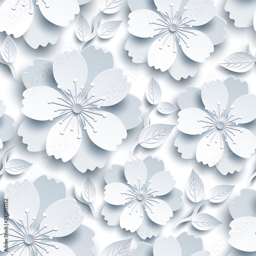 © silvionka, Fototapeta premium Beautiful seamless pattern with white-grey sakura