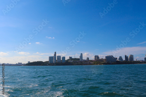 Naklejka premium Beautiful seascape with building of Pattaya in Thailand.