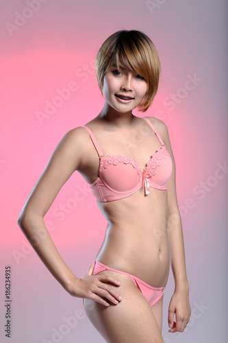 © SOMPHOTO, Obraz premium Beautiful sexy woman in pink underwear