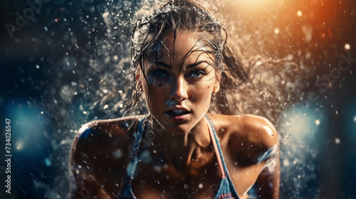 Obraz premium Beautiful sexy woman in wet sportswear with water splashes