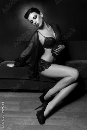 © Katrina Brown, Fototapeta premium Beautiful Sexy Woman on a Couch