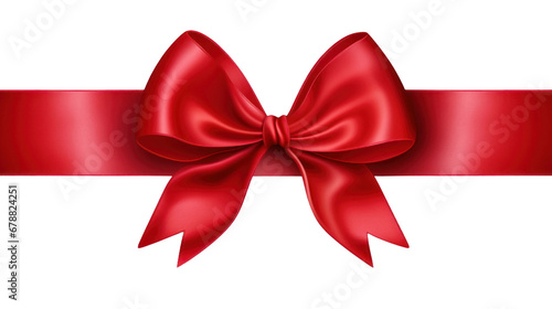 © Sunny_nsk, Fototapeta premium Beautiful shiny silk red bow isolated on transparent background, decorative design png element, clip art festive object.