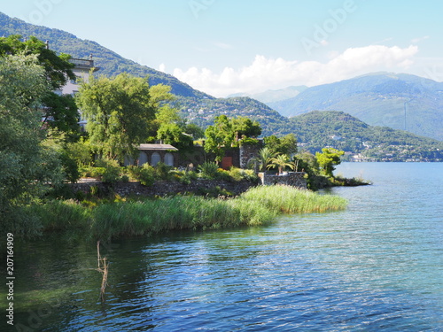 Fototapeta premium Beautiful shore of swiss Brissago island at alpine Lake Maggiore landscape...