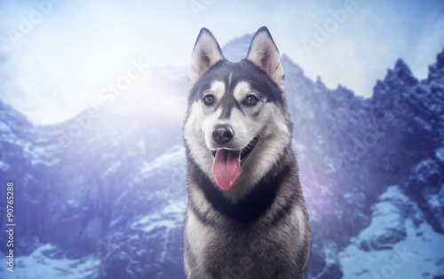 Fototapeta premium Beautiful siberian husky. Pedigree dog. Beautiful husky dog looking at the camera