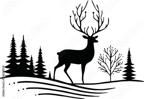 Obraz premium Beautiful silhouettes deer on white background. Winter elements for decor and...