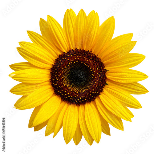 © wanna, Fototapeta premium Beautiful single sunflower on a white background with bright yellow petals, a perfect image of summer nature