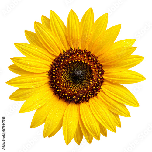 © wanna, Fototapeta premium Beautiful single sunflower on a white background with bright yellow petals, a perfect image of summer nature