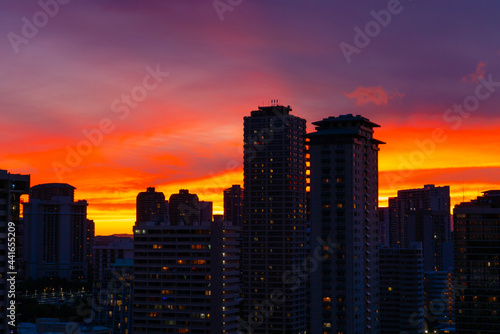 Fototapeta premium Beautiful sky after sunset. Waikiki, Honolulu, Oahu, Hawaii.
