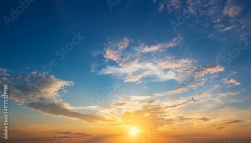 Obraz premium Beautiful Sky Background Sunset Sunrise Sky With Light Clouds And Real Sun