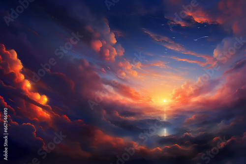 Fototapeta premium Beautiful sky background with clouds. Time of sunset and dawn.