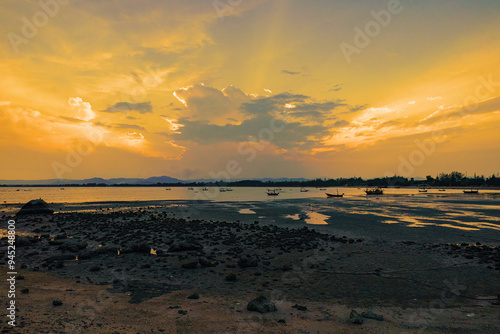 Naklejka premium Beautiful Sky In The Morning During Sunrise At Fisherman Village.