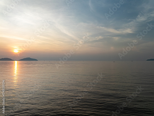 © Panya, Fototapeta premium Beautiful sky sunset or sunrise clouds over sea nature background