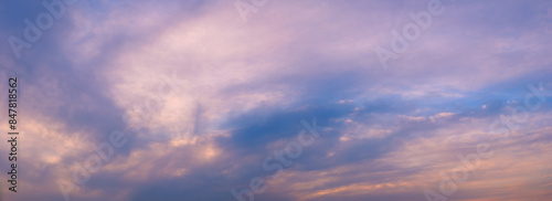 Fototapeta premium Beautiful sky sunset with red clouds on blue background