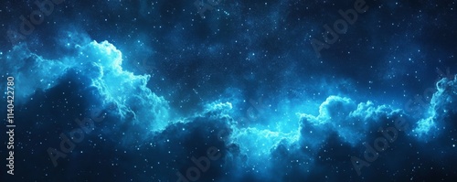 © Valentyna, Fototapeta premium Beautiful Sky with Aurora and Stars. Blue Northern Lights Wallpaper with copy-space.