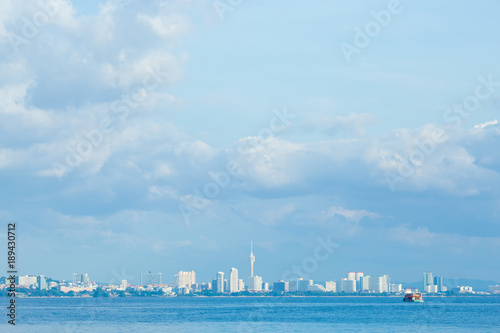 Fototapeta premium Beautiful sky with sea and boat tour background Pattaya City at Koh Lan...