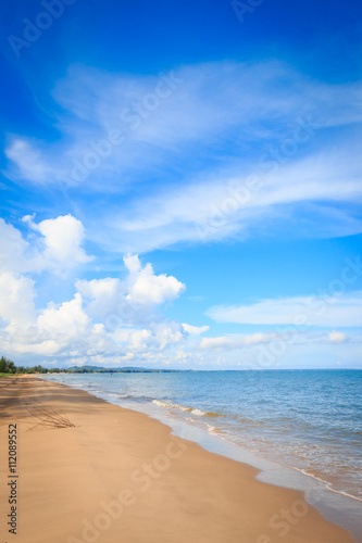 Obraz premium Beautiful sky with sea on the peaceful beach for relax, beach background.