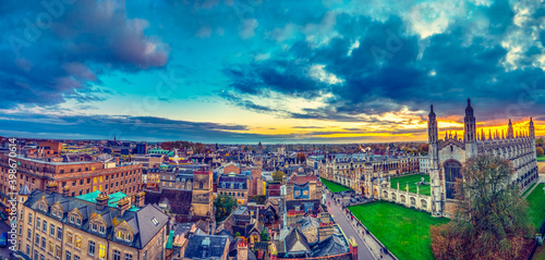 © Pawel Pajor, Fototapeta premium Beautiful skyline sunset of Cambridge city in UK