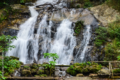 Fototapeta premium Beautiful Small Waterfall in summer Forest in jungle at Doi Saket Distric,...