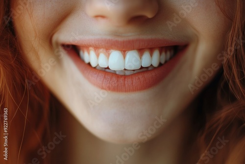 © Olha, Obraz premium Beautiful smile girl with white teeth. natural skin studio portrait. close up
