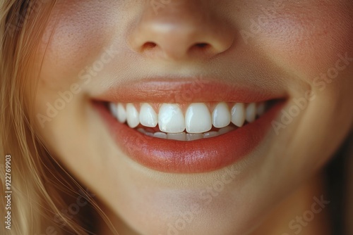 © Olha, Obraz premium Beautiful smile girl with white teeth. natural skin studio portrait. close up