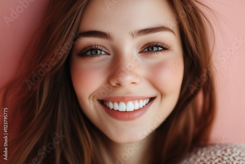 © Ana, Fototapeta premium beautiful smiling girl with straight white teeth close up portrait