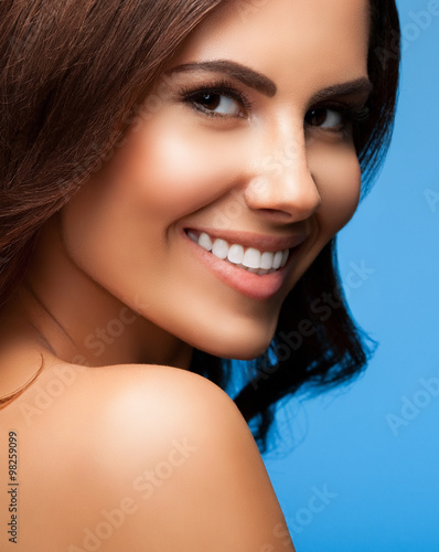 © vgstudio, Fototapeta premium beautiful smiling woman, on blue