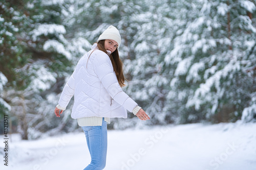 Fototapeta premium beautiful smiling young woman in wintertime outdoor. Winter concept