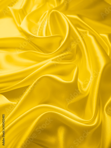 © Sindija, Fototapeta premium Beautiful smooth elegant wavy light yellow satin silk luxury cloth fabric texture, abstract background design. Copy space. Wedding, engagement concept.