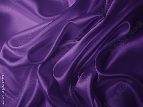 © Sindija, Fototapeta premium Beautiful smooth elegant wavy violet purple satin silk luxury cloth fabric texture with violet background design. Card or banner. Copy space