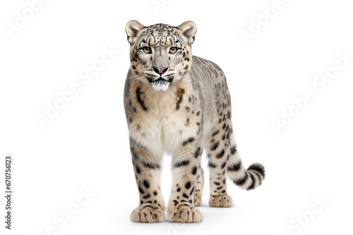 © Andrii, Obraz premium Beautiful snow leopard isolated on white background. AI generated content.